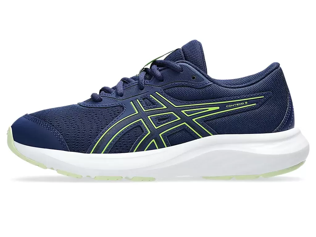 CONTEND™ 9 SINIF OKUL ayakkabısı genç ayaklar için tasarlanmıştır. Ayak parmaklarındaki takviye, ayak parmaklarındaki kauçuk dikişler ve sağlam kauçuk dış taban gibi detaylar dayanıklılığı artırır ve ayakkabının ömrünü uzatır.