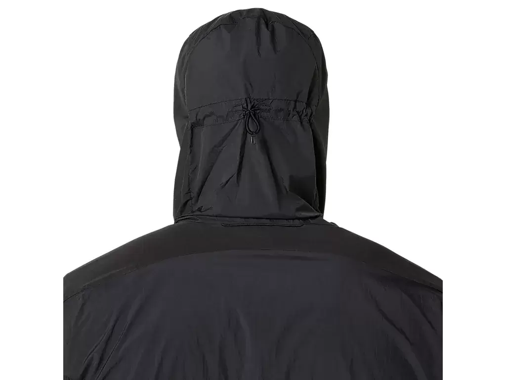 Yağmur ve rüzgara karşı koruma sağlamak için tasarlanmış çok yönlü bir cekettir ve koşu sırasında kolayca çıkarılıp yan cebe yerleştirilebilir.
