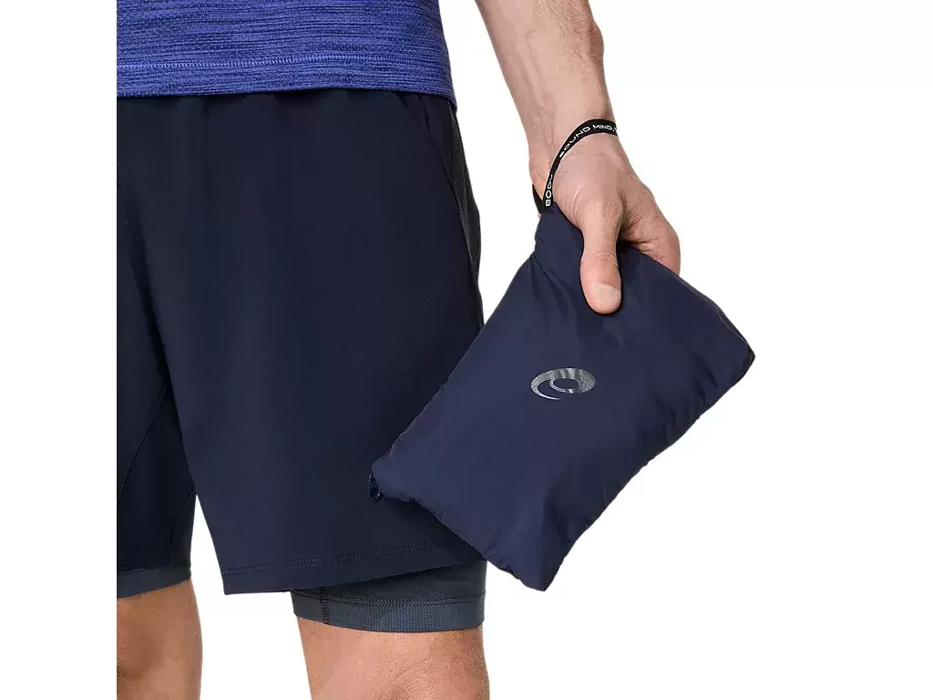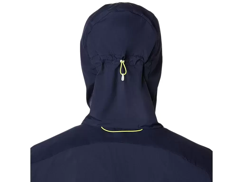 Yağmur ve rüzgara karşı koruma sağlamak için tasarlanmış çok yönlü bir cekettir ve koşu sırasında kolayca çıkarılıp yan cebe yerleştirilebilir.