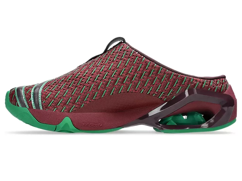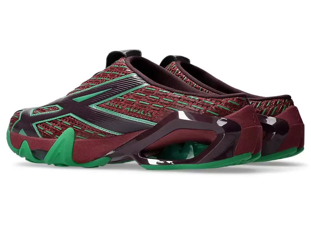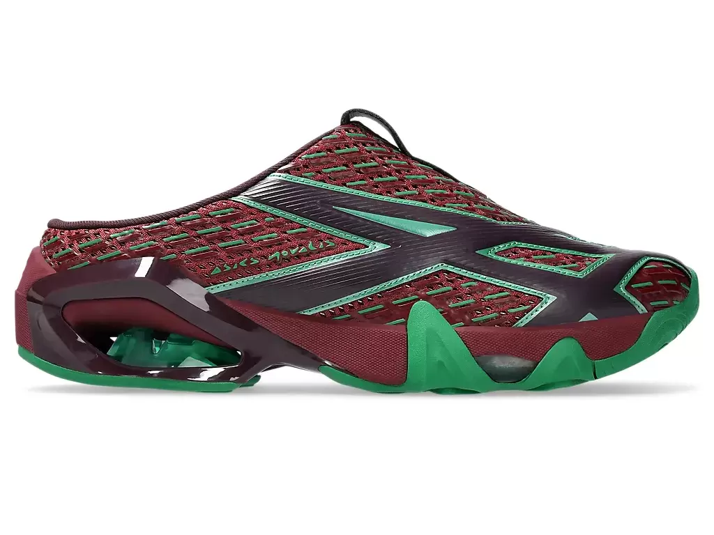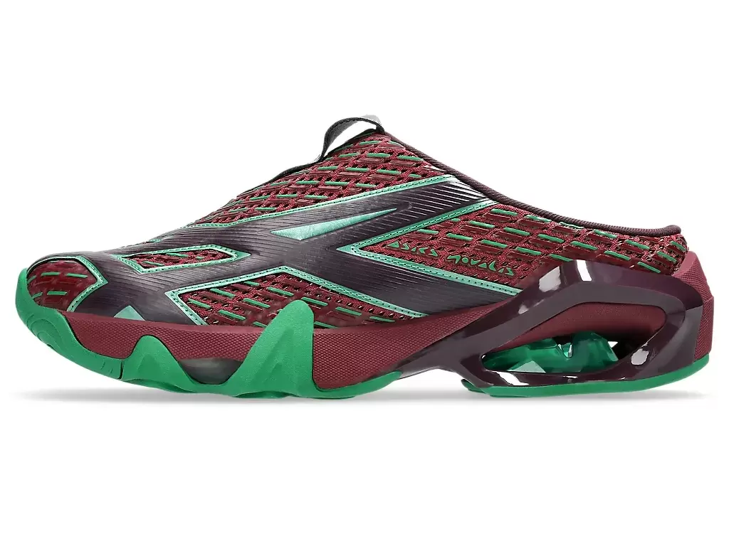TRANSCEND serisinin tişörtlerindeki grafikler, ayakkabının üst kısmına yeniden yorumlandı. Siluet, ayakkabının giyilip çıkarılmasını kolaylaştırmak için sabot tarzı bir yapıyla oluşturuldu.