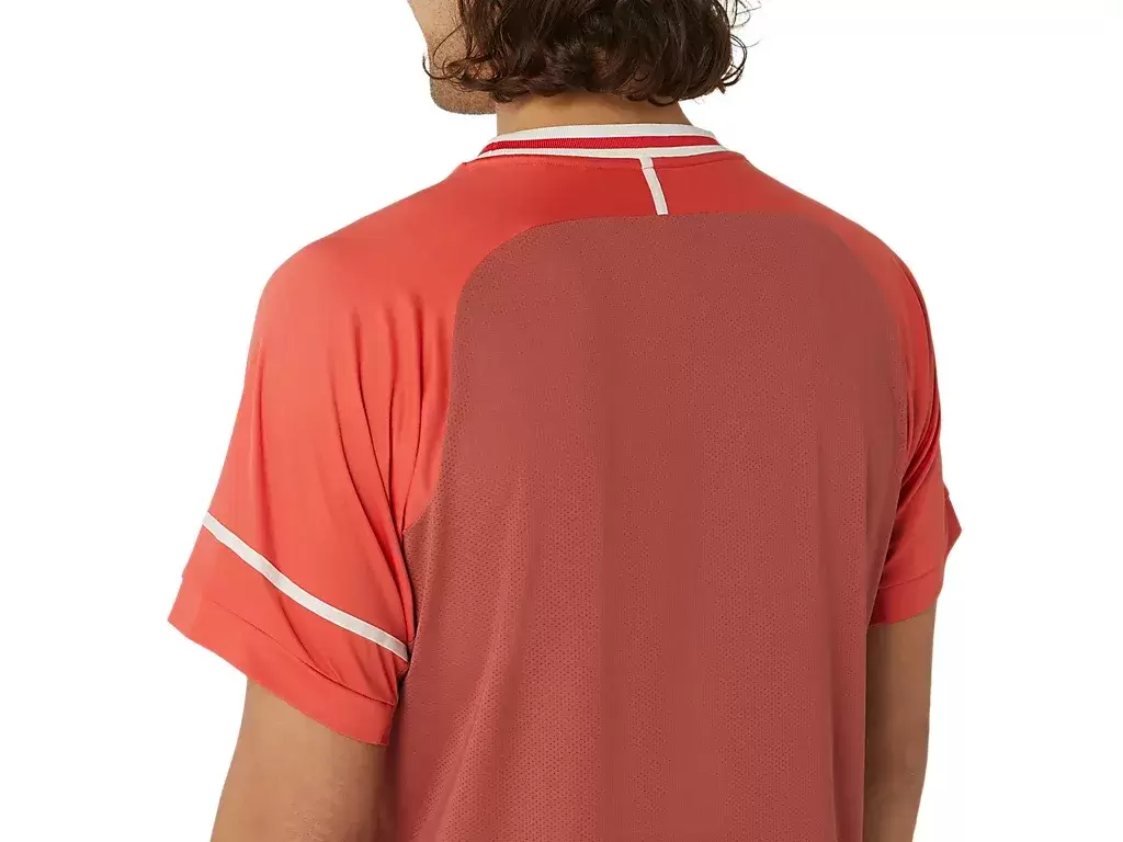 Hafif üst, kuru ve rahat kalmanıza yardımcı olmak için arkada su tutmayan file panel ve etek ucunda yan yırtmaçlara sahiptir.