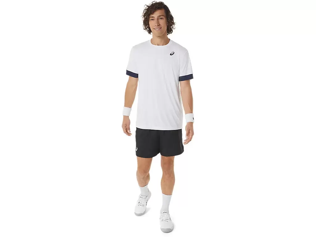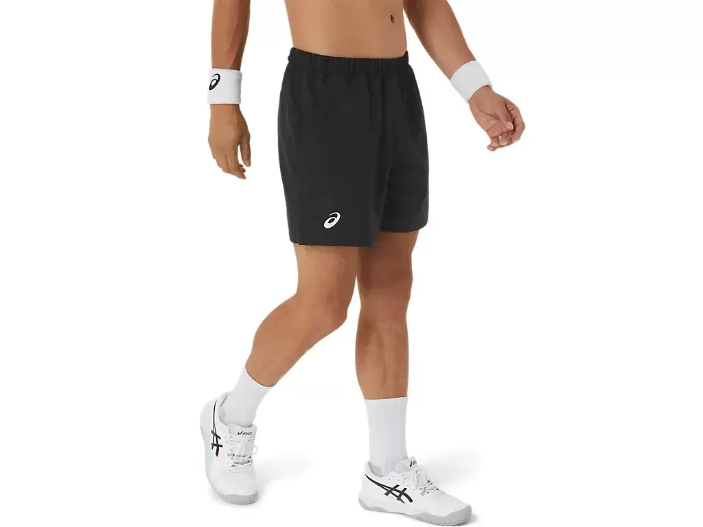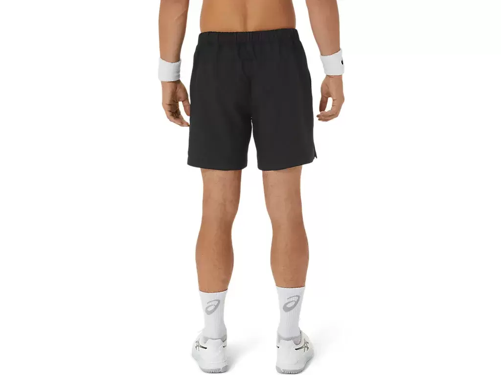 COURT 7IN SHORT, nefes alabilirliği artırmak için bel bandı boyunca file panellere sahipken, hafif dokuma kumaş nem yönetimi özelliklerini iyileştirir.