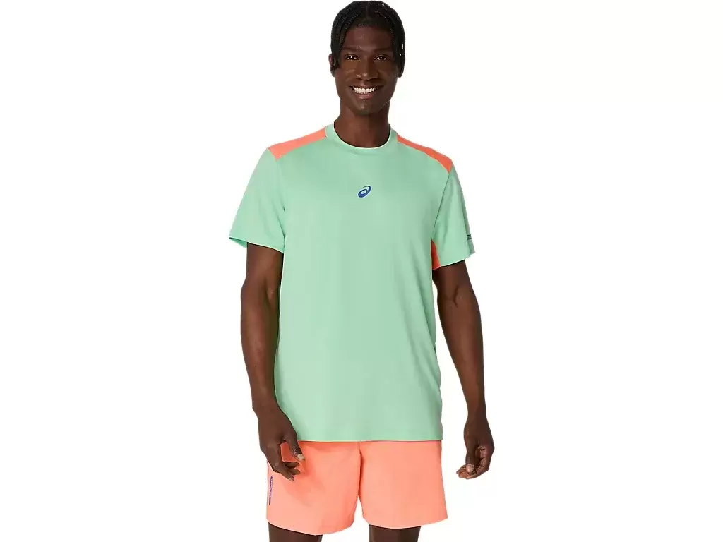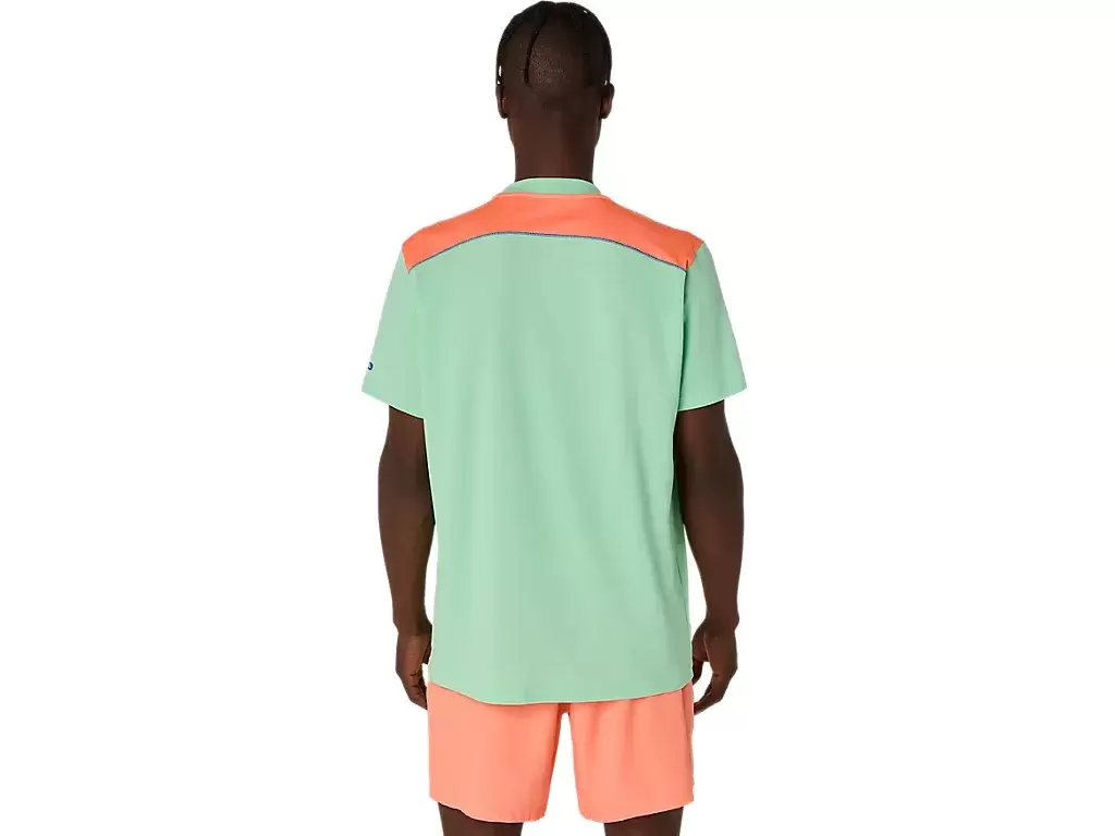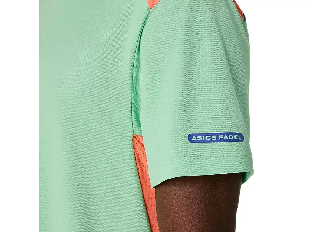 Bu PADEL COURT KISA KOLLU ÜST, çeşitli maçlar ve antrenmanlar için zamansız, klasik bir padel ve renk bloklu tasarıma sahiptir.