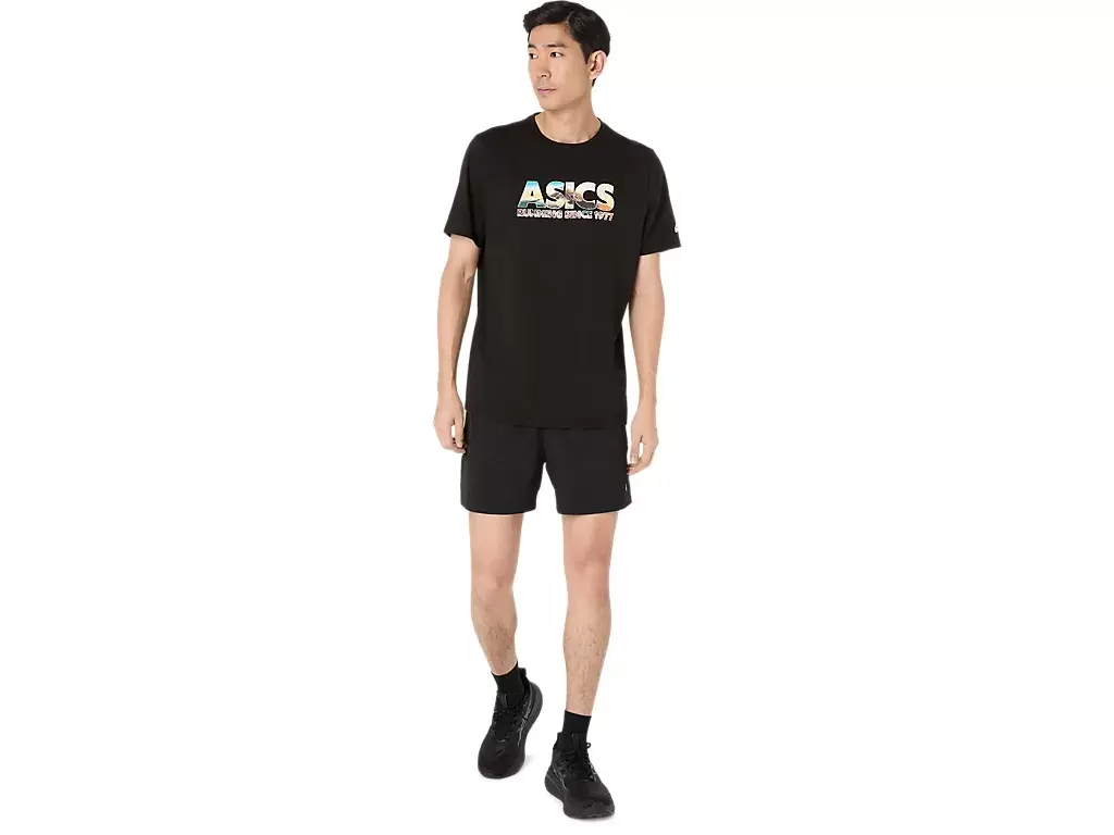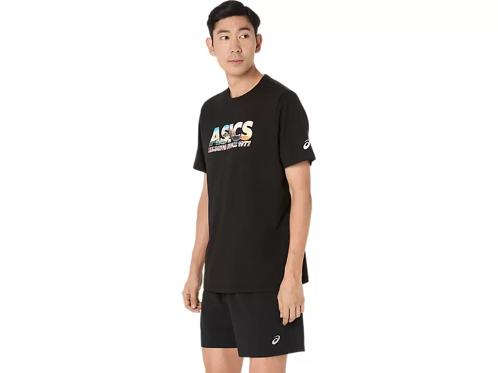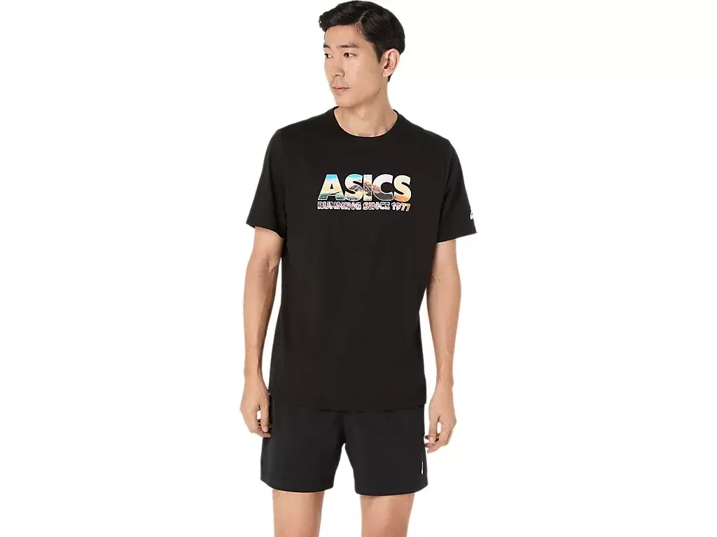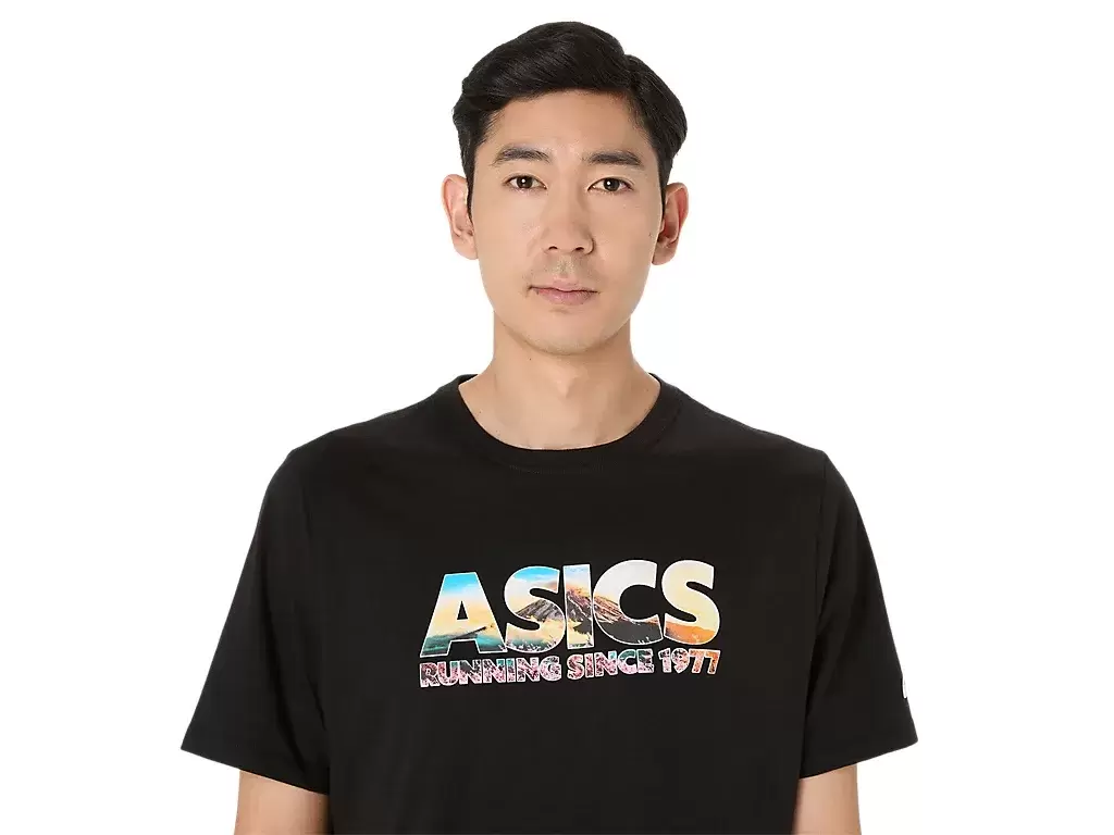 Bu rahat örme kısa kollu tişört, Fuji Dağı’ndan ilham alıyor. Ön grafikte kiraz çiçeği ve dağ zirvesi baskısıyla işlenmiş “ASICS GLOBAL RUN CLUB” ifadesi yer alıyor.