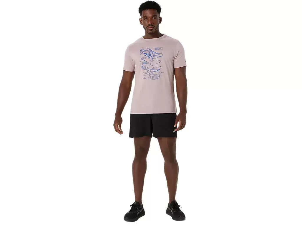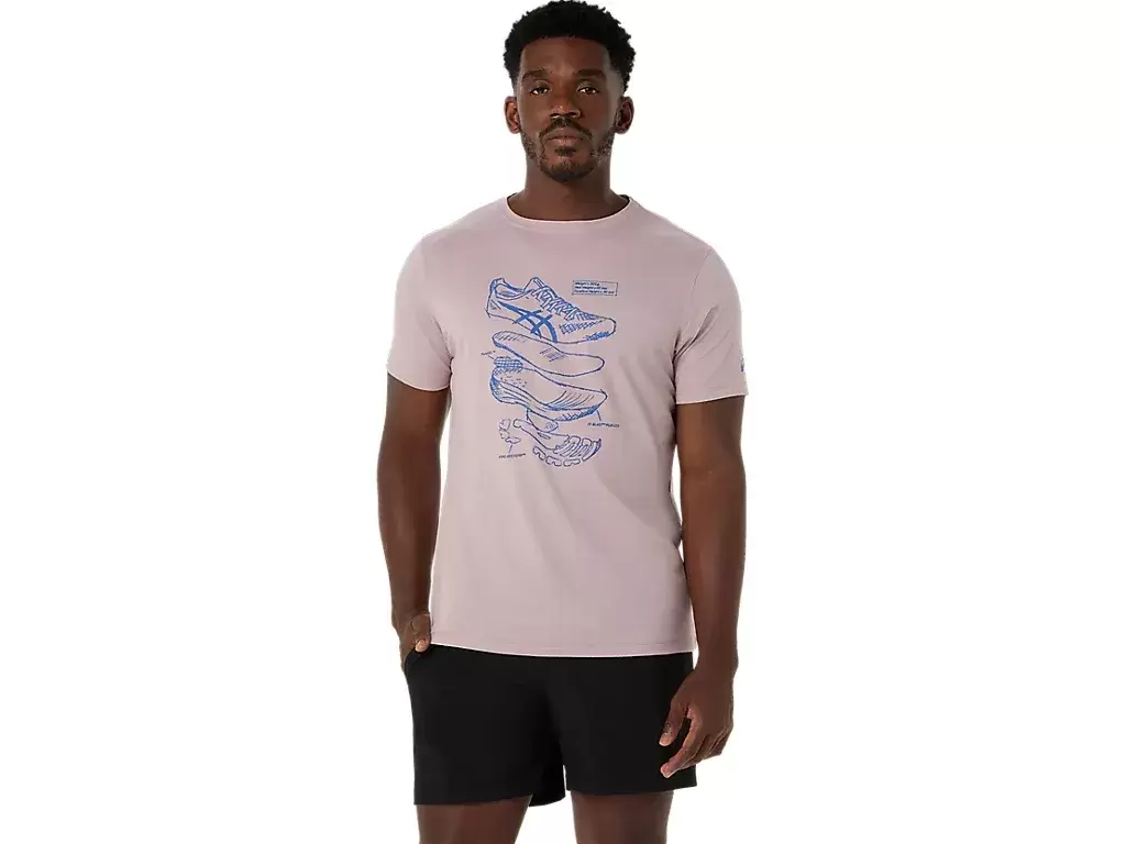 Bu rahat örme kısa kollu tişört, ASICS’in performans koşu ayakkabısı eskizlerinden ilham alıyor. Koşu ayakkabılarımızı üretmek için kullanılan çeşitli bileşenleri gösteren ön grafikle damgalanmıştır.