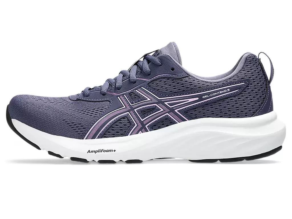 GEL-CONTEND® 9 (Geniş) koşu ayakkabısı iyi yastıklama, destek ve dayanıklılık sağlar.