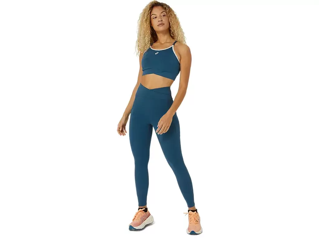 Bu tayt, antrenmanlarınız sırasında daha fazla denge için yüksek bel bandı ve kimono esintili çapraz katlama özelliğine sahiptir.