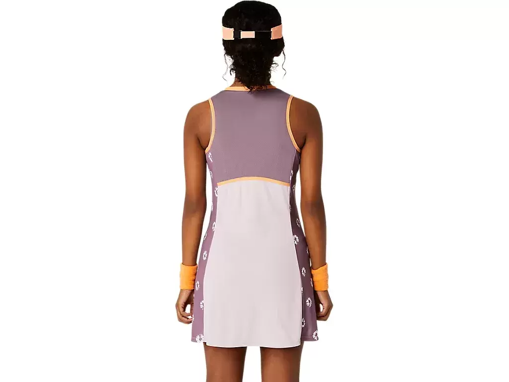 Bu elbise, geleneksel Japon boyama teknikleri olan Shibori’den ilham alan yanlarda grafik baskıya sahiptir.