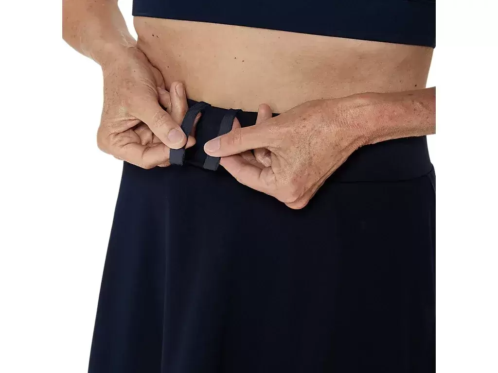 Etek altı ayrıca ayarlamayı kolaylaştıran bağcıklı bir bel bağı içerirken, yan yırtmaçları hareket özgürlüğü sağlar.