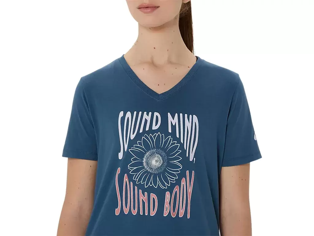 Bu kısa kollu V yakalı üst, cilde şık bir his vermek üzere tasarlanmıştır. Hareket özgürlüğünü artırmak için tasarlanmış rahat bir kumaşa sahiptir.