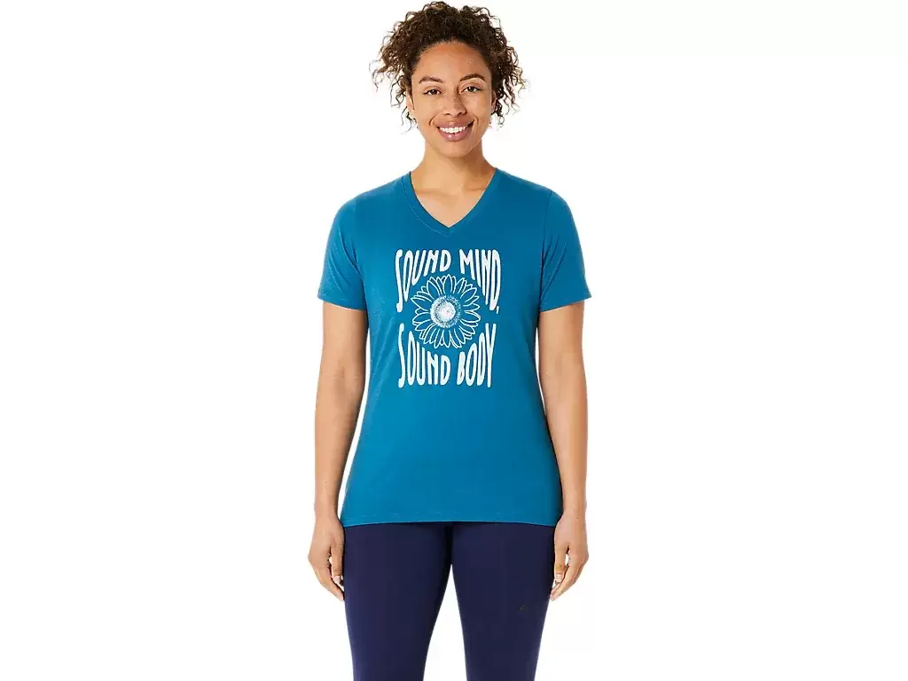 Bu kısa kollu V yakalı üst, cilde şık bir his vermek üzere tasarlanmıştır. Hareket özgürlüğünü artırmak için tasarlanmış rahat bir kumaşa sahiptir.