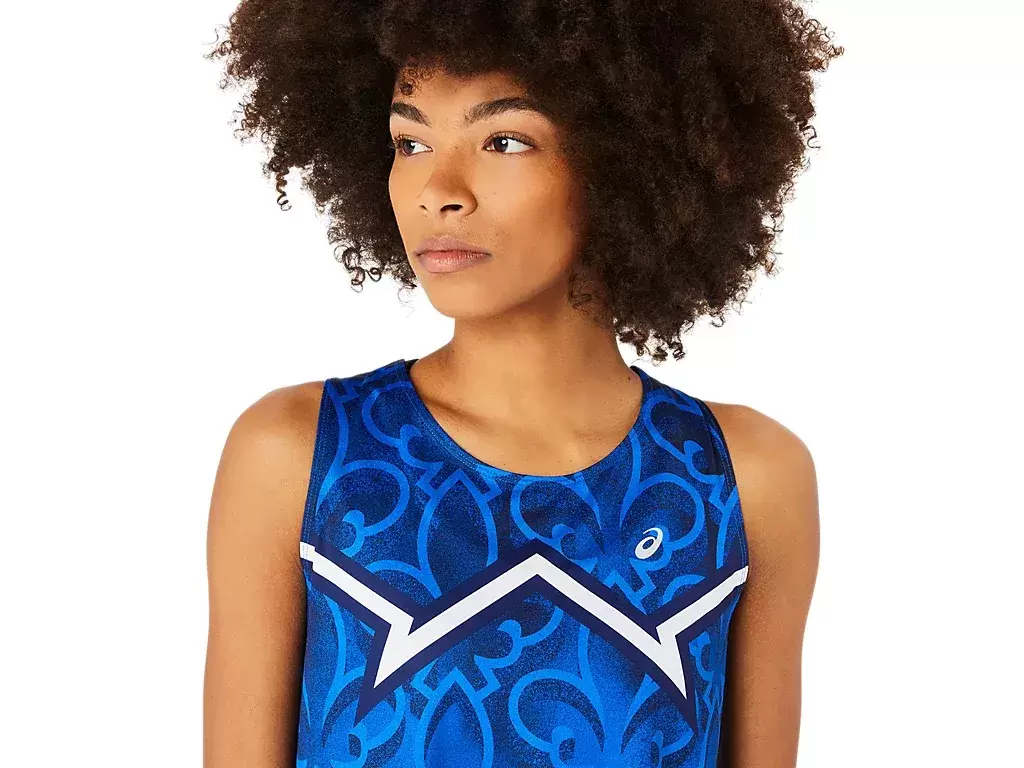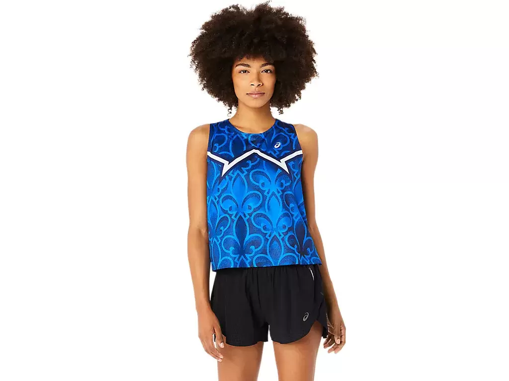 Atlet, ikonik sembollere sahiptir ve Japonya, Fransa ve ABD olmak üzere üç ülkeyi temsil edecek şekilde renklendirilmiştir.