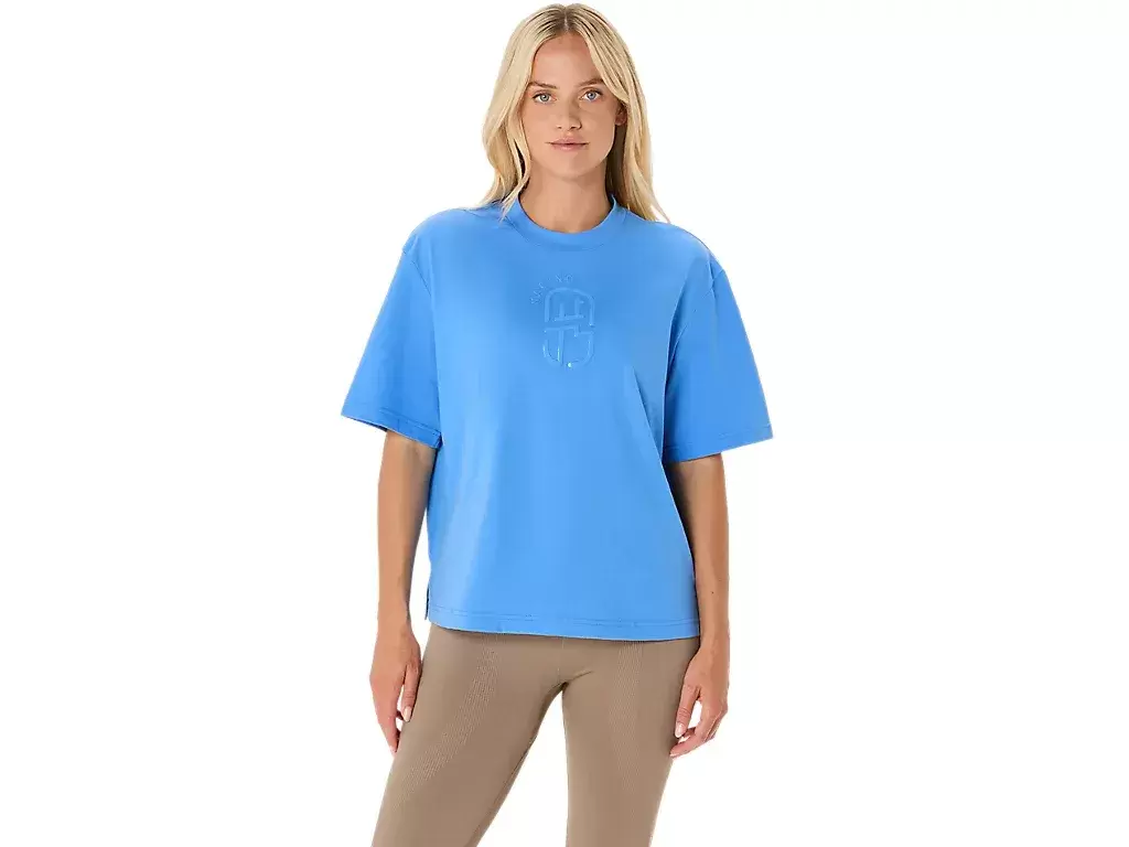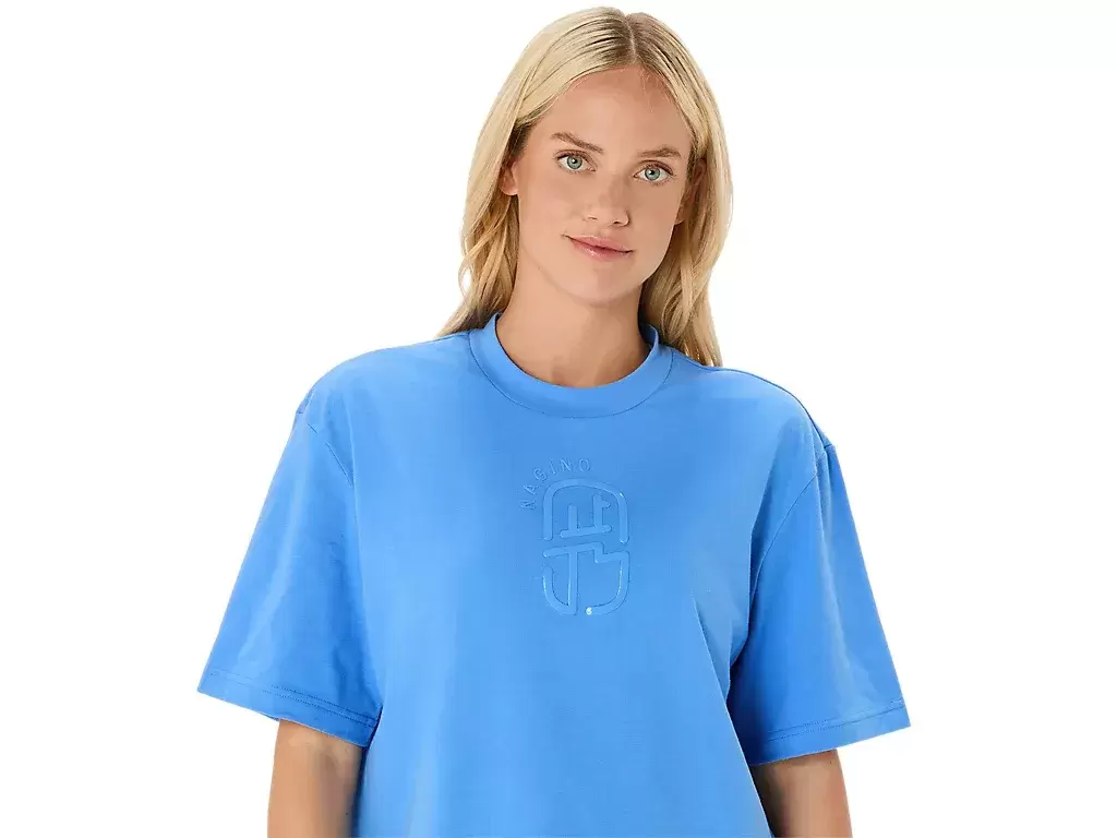 Üst kısım ayrıca NAGINO™ Koleksiyonu grafiği, kısa boy, rahat kesim tasarımı ve hareket kolaylığı için yan yırtmaçlarla tamamlanıyor.